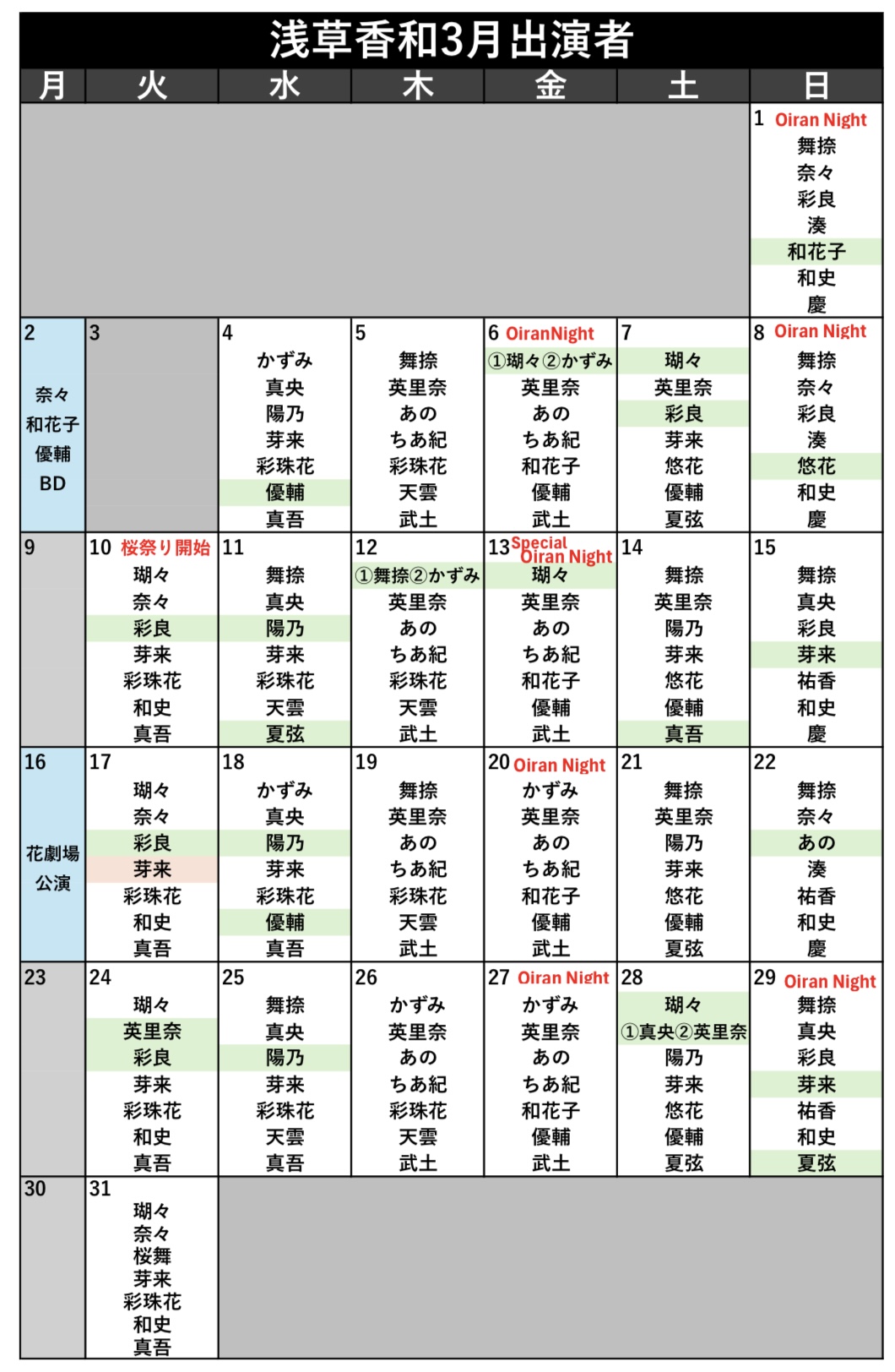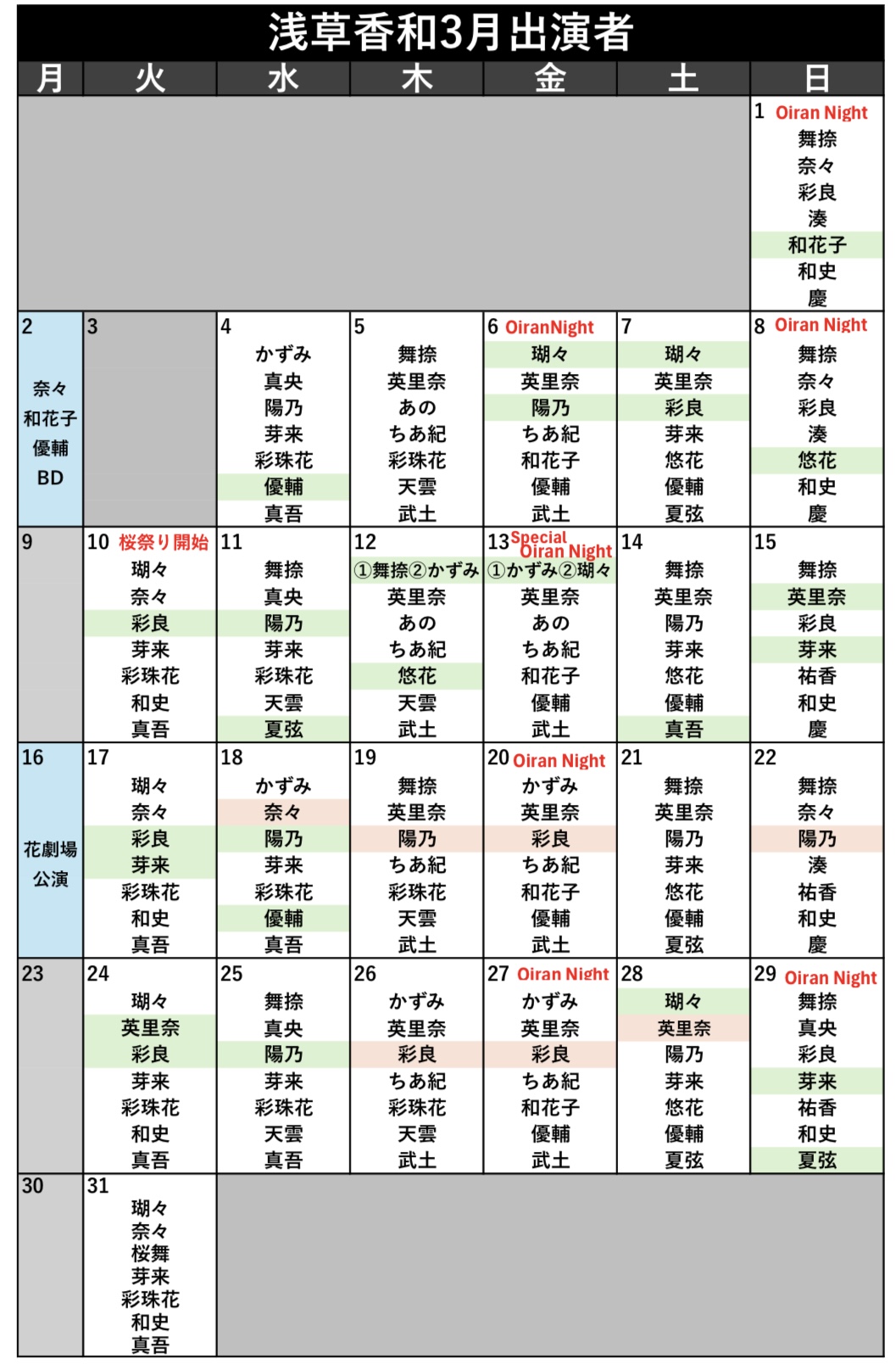 出演者スケジュール