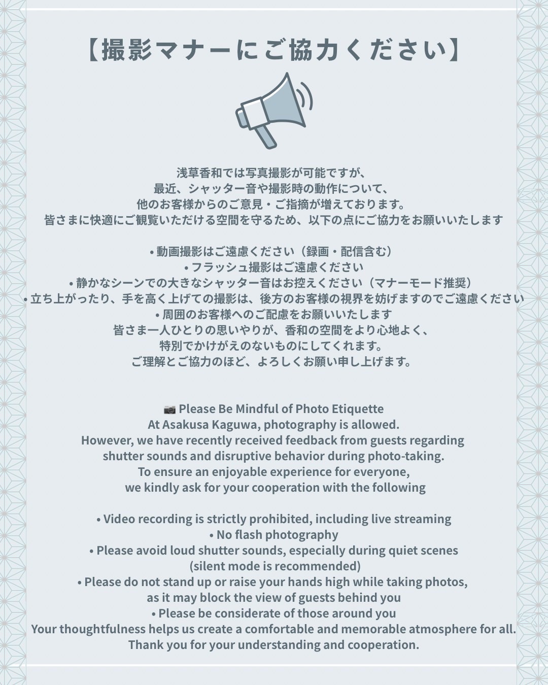 ASAKUSA KAGUWA asks the following to ensure that all guests can enjoy the show comfortably.
